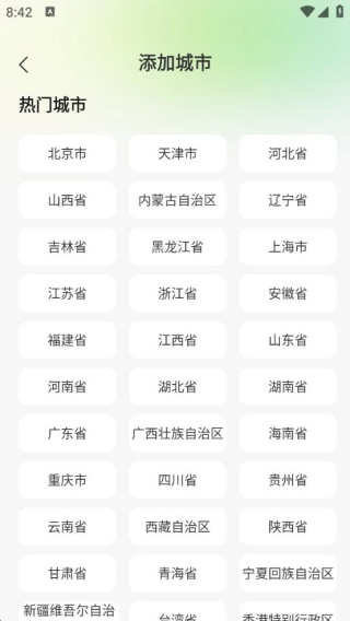 1、进入平台后,是需要选择添加城市的,热门城市一目了然。