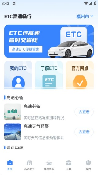 高速路ETC助手是一款ETC便捷管理工具。软件内支持绑定ETC,还为提供海量的高速必备实用技巧,让用户能够畅行无忧。软件内更有高速天气预警,可以帮助用户实时查看高速路段天气信息。还有各种常见问题解答,这是一款好用易用的智能旅途助手。