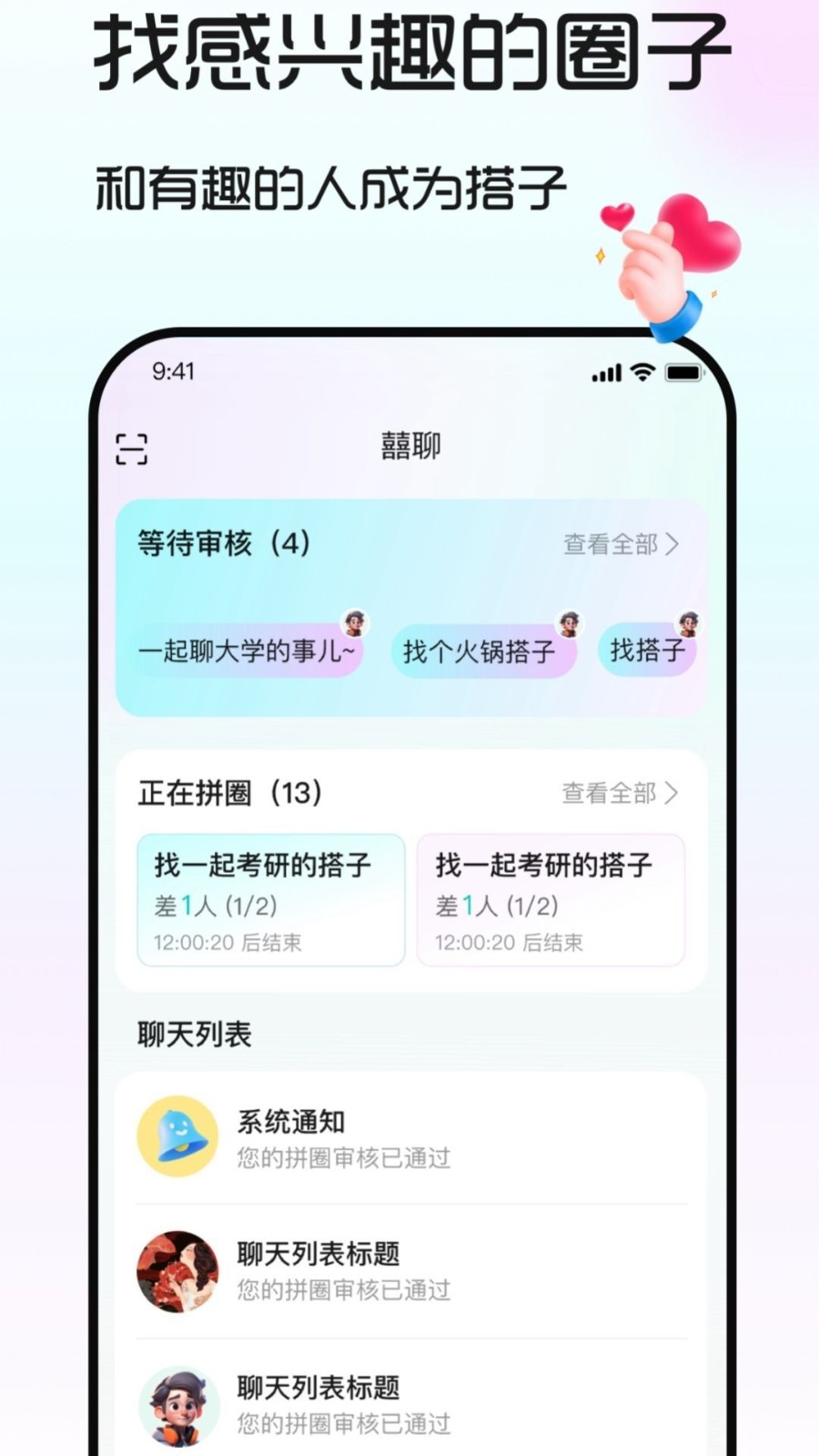 囍搭子是一款扩列交友软件。软件内以兴趣爱好为基础进行交友,在这里你可以找到聊天搭子、学习搭子、追剧搭子、开黑搭子等等,并且支持发布找搭子帖子!软件内提供多种有趣的精彩活动圈子,用户可以根据自己的兴趣随意加入结交更多有意思的朋友!
