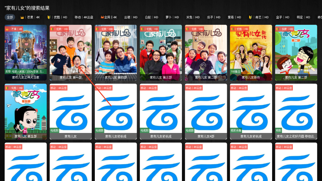 3.输入完成后。出现搜索结果,点击你想看的电视剧封面即可