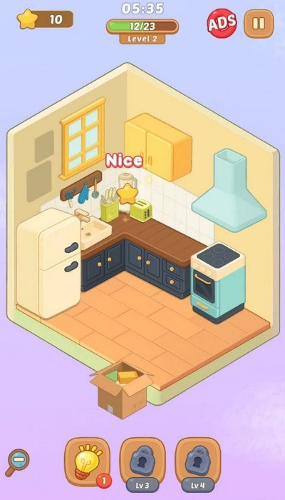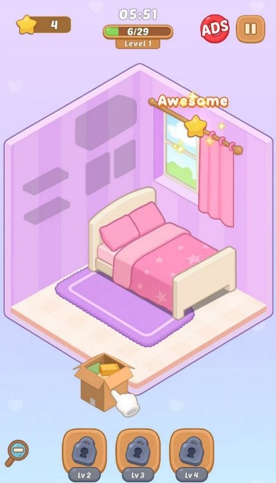 3、限时设计挑战:游戏中每个关卡都设有定时器,玩家需要在规定时间内完成房屋的整理和设计工作,这不仅考验玩家的设计能力,还对其速度提出了要求。