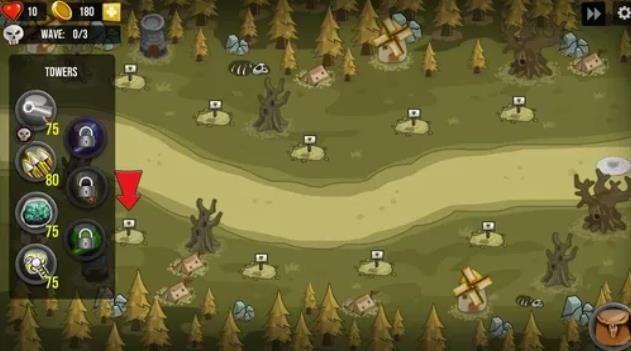 每类防御塔可升级攻击范围、火力、射速等参数,并解锁特殊能力。例如箭塔可升级为“毒液箭”(持续伤害)或“爆裂箭”(范围溅射),玩家需根据关卡需求选择升级路径。
