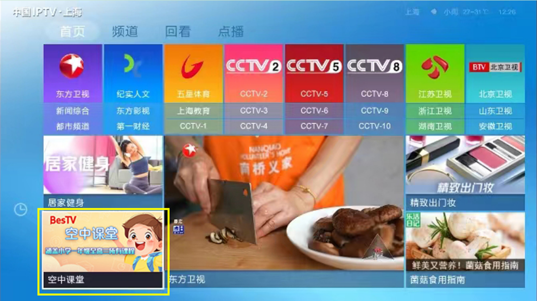 第一步:在各平台首页找到“空中课堂”入口,点击进入。