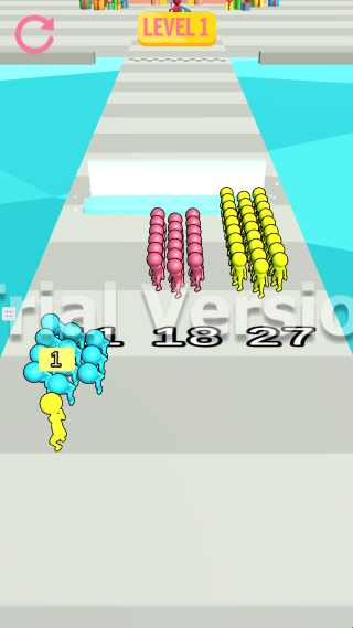 2、触摸屏幕左右两侧来控制果冻人横向移动,躲避障碍物。尽可能多地收集赛道上的道具,壮大自身队伍实力。