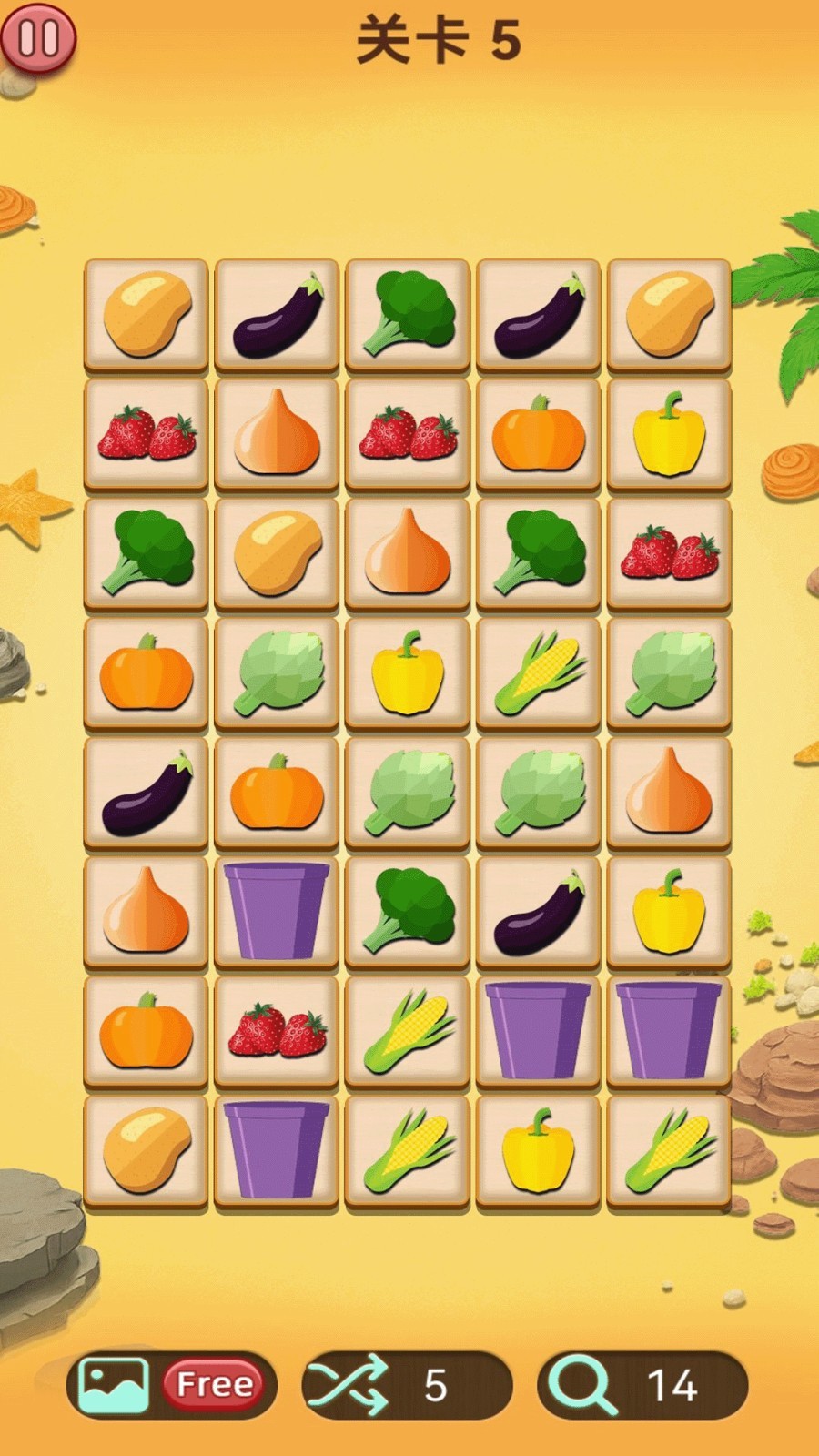 2、不是相邻的水果,类似图下这种情况,可以连接的也能消除。