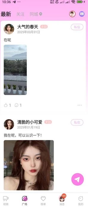 2、无聊的随时都有人陪,本平台可发布动态,查看各种动态互动,兴趣话题交友也轻松;