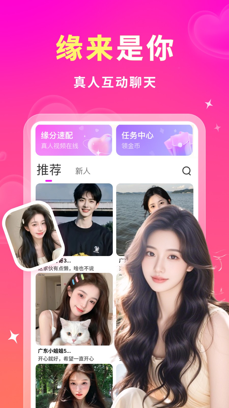 妙约是一款真人实名社交聊天软件。软件内用户均经过实名认证,并且提供的用户资料信息拒绝假冒、照骗,都是真实可靠的,在这里你可以真诚交友。软件内可以进行缘分速配,软件会自动为你推荐优质的聊天用户,让每次聊天都充满新鲜乐趣!