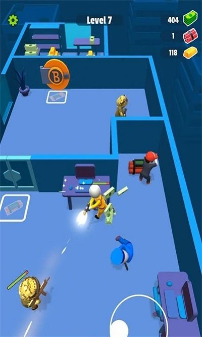 抢劫小哥是一款休闲益智类游戏,游戏采用卡通人物设计,游戏中玩家操作小人看准抢夺对象,直接上去抢夺,抢到后利用地形优势和操作迅速摆开他们,抢到多少就可以带出去多少,你还可以利用这里钱升级你的装备,感兴趣的玩家快来体验吧!