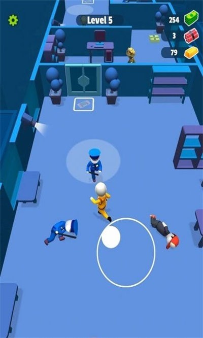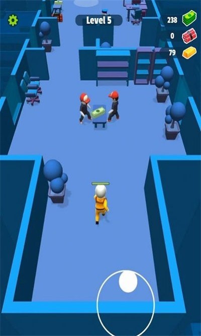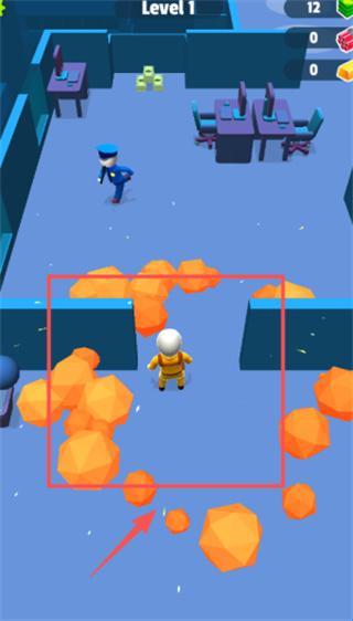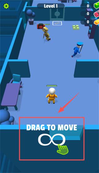 1、操控角色时需长按屏幕下方的无限符号并拖动,引导黄色小人灵活移动,注意躲避持红色武器与棍子的巡逻人员,同时收集右上角随机刷新的特殊道具。
