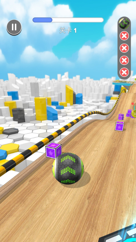 3、在行进过程中,你需要高度集中注意力,灵活地避开移动障碍、通过旋转平台,并尽可能收集散落在赛道上的星星,这些星星是解锁新皮肤的关键。
