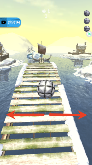 2、游戏开始后,使用单指在屏幕任意位置进行滑动,通过一个虚拟的控制滚轮来精确引导小球的前进方向与滚动速度,使其在悬浮的赛道上平稳前行。