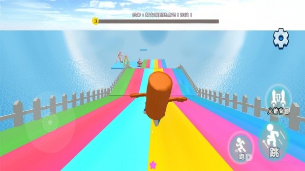 2、看到紫色提示区域时,操控角色进入,触发互动剧情或获得特殊能力。快速启动,利用 “跳” 和 “跑” 功能,全力向彩虹滑梯终点冲刺。