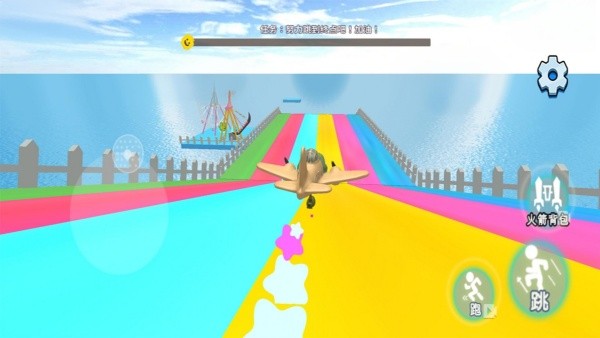 4、遇到彩色路径时,尽量沿中间或色彩鲜艳的区域滑行,可借助 “火箭背包” 道具快速前进,同时收集沿途的星星等物品,助力完成任务。