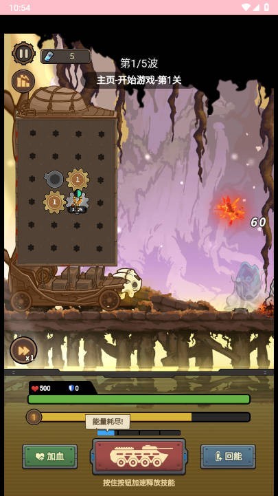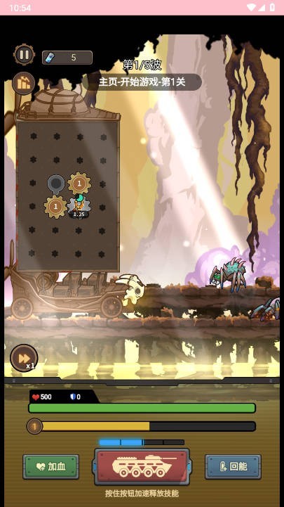2、创新放置玩法,烧脑策略对决:核心玩法是放置齿轮进行防御作战。多种功能各异的齿轮,如攻击齿轮(弹射攻击、范围伤害等)、防御齿轮(木盾等)、辅助齿轮(冷却齿轮),供你自由搭配。