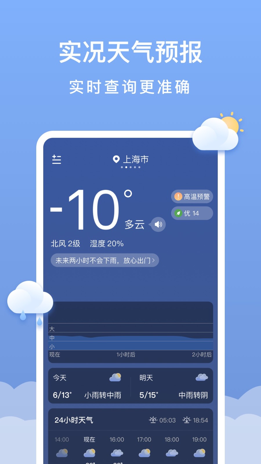 晴云天气v1.2.0是一款实况天气预报软件。软件会根据用户所在位置实时更新天气情况,让用户能够掌握一手天气信息。软件内提供分钟级雨雪天气气象提醒,让用户能够天气预知天气状况,避免恶劣天气出行。支持查看15天天气预报,阴晴雨雪早防范!