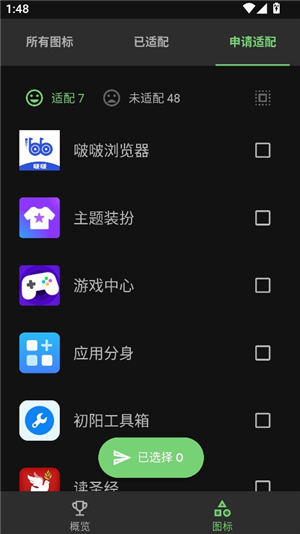 4、如果没有合适的适配图标,也可以在线申请适配,勾选应用并发送即可