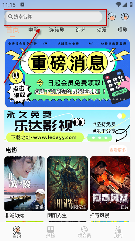 2、在搜索栏输入影片名称、演员名等关键词,点击搜索按钮,可精准查找目标影视。