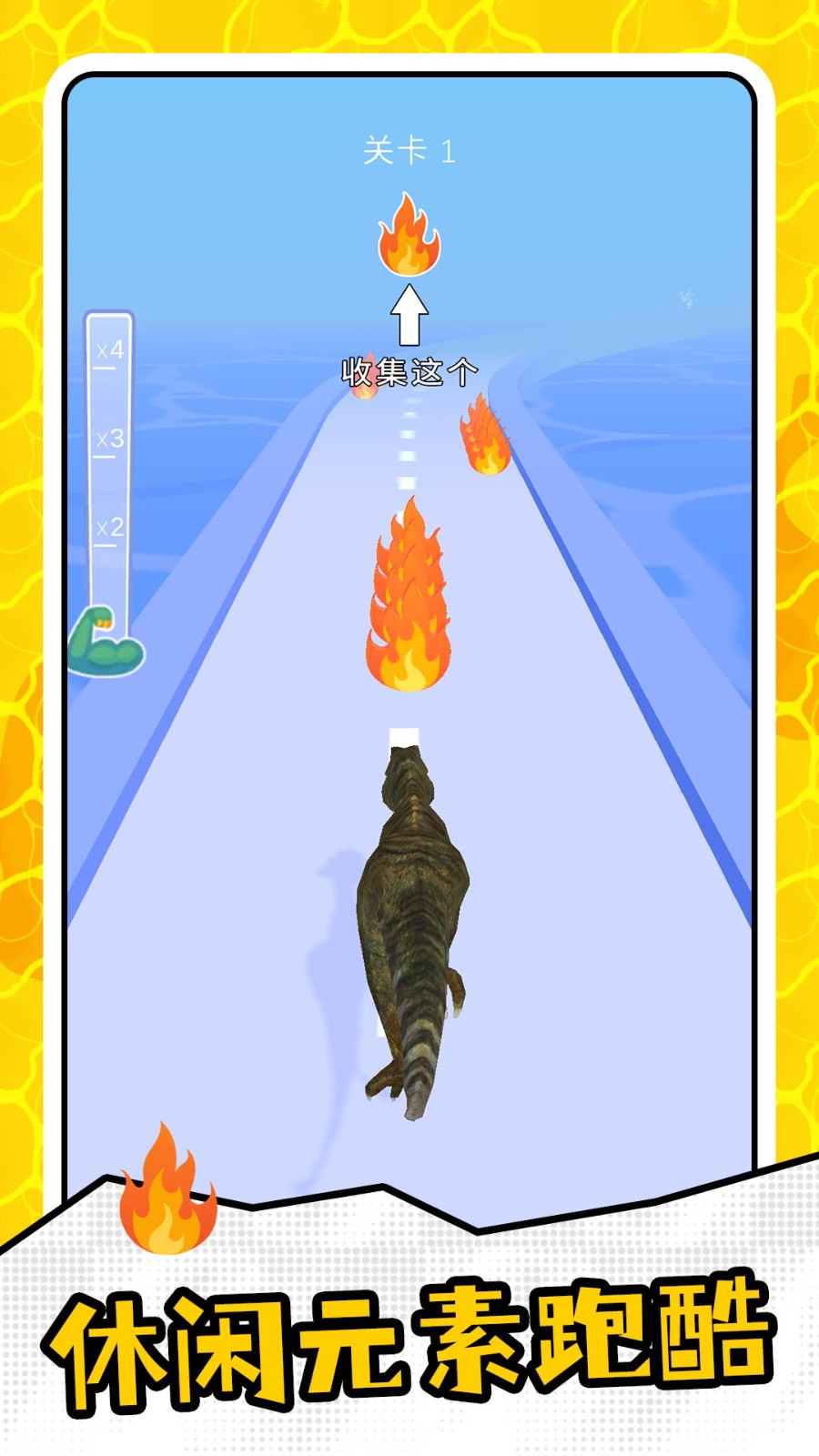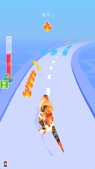 1、使用手指在屏幕上滑动即可控制恐龙的左右行动,帮助恐龙去收集更多火焰元素吧!