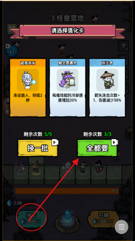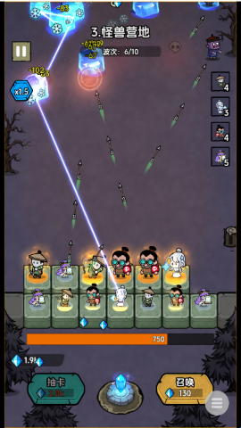 4、3重随机机制:随机召唤英雄、搭配技能、合成进化,增加游戏趣味性。