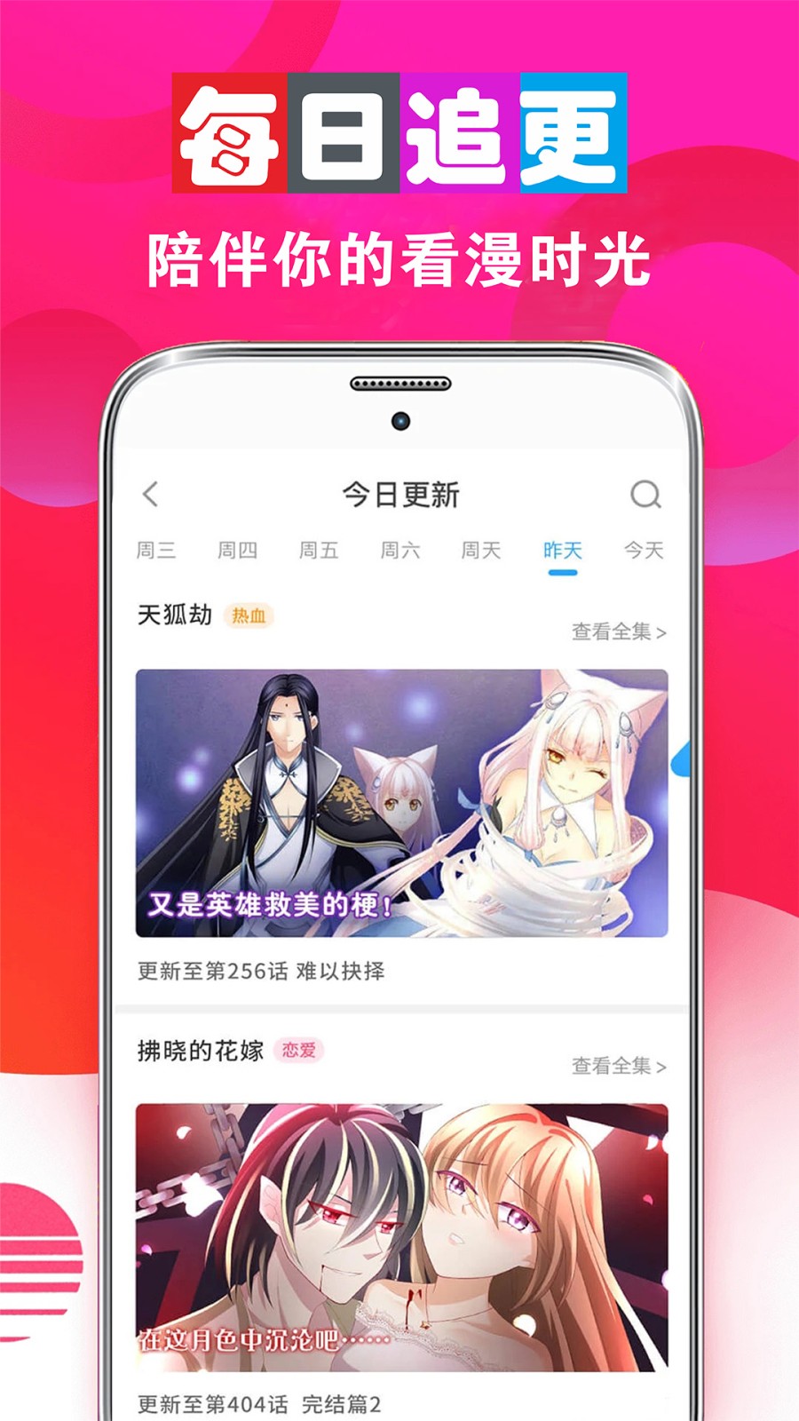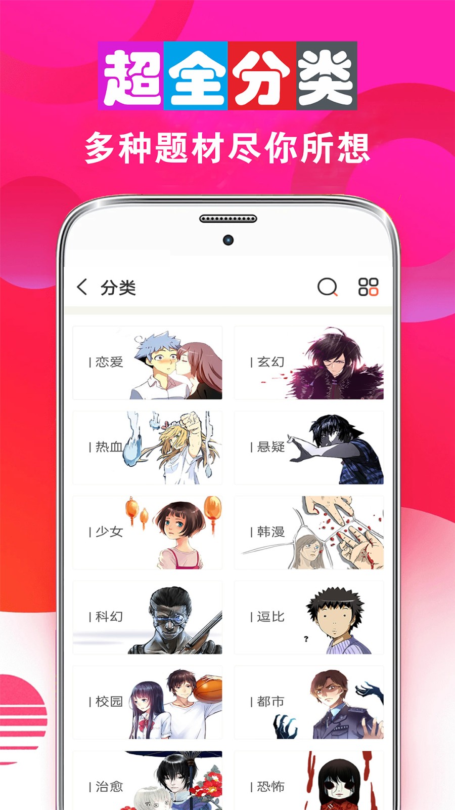 各类题材漫画:恋爱、热血、动作、言情、冒险、校园、唯美、搞笑、体育、科幻、魔幻、悬疑、治愈、战争等漫画实时连载