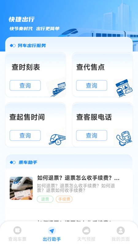 出行工具,集整合时刻表、代售点位置、车票起售时间等实用查询,搭配官方客服电话,出行疑问及时解答。
