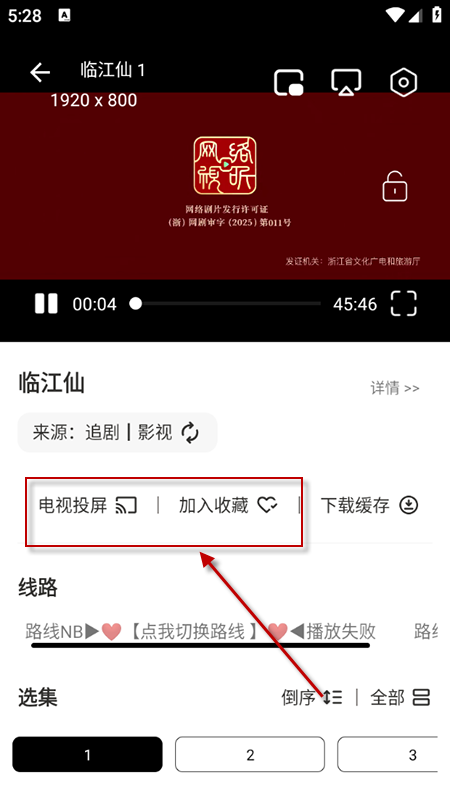 3、确保手机与电视连接同一WiFi,点击播放界面“投屏”图标,选择对应电视设备即可在大屏观看。