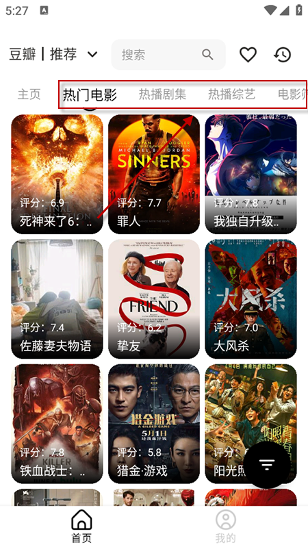 1、在首页点击分类标签,浏览推荐内容可以浏览影片。