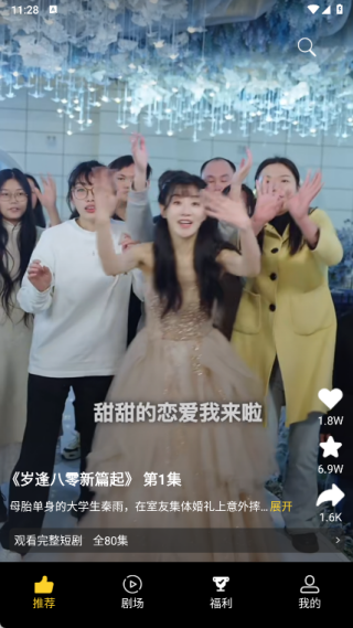 1、在推荐页面中为用户带来了精彩的短剧,用户可以自由的进行播放;