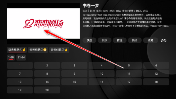 2、可以看到小编给大家带来的这款喵影视TV内置了很多的源,大家可以根据自己的喜好来点击切换数据源哈。