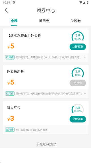 2、在领券中心有各种外卖券,可以随时领取和抢购;