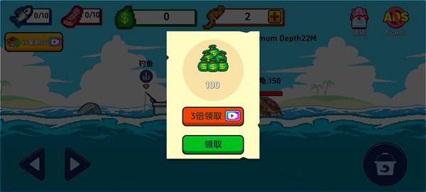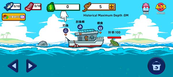 2、玩家可控制鱼线左右移动下潜钓鱼;