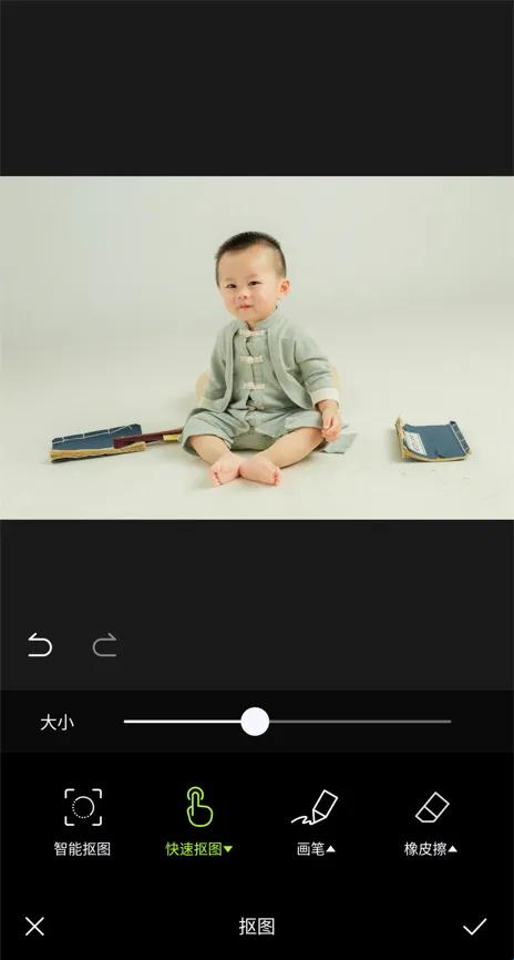 执行上述操作后,进入“抠图”界面,点击“智能抠图”按钮,如图所示。
