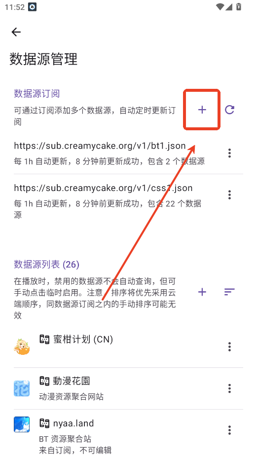 3.点击“+”添加你的源。