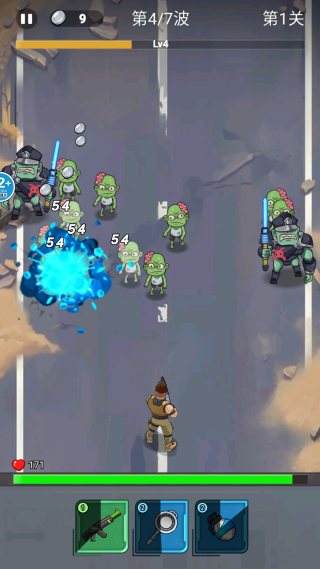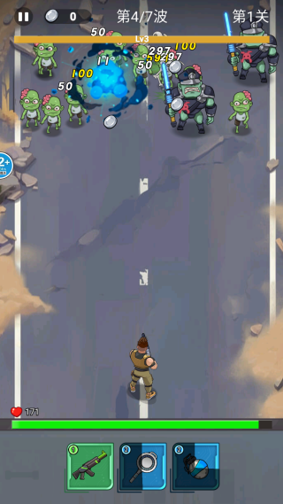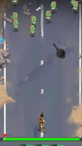 3、滑动屏幕控制角色左右移动,不断的攻击前方的僵尸boss。