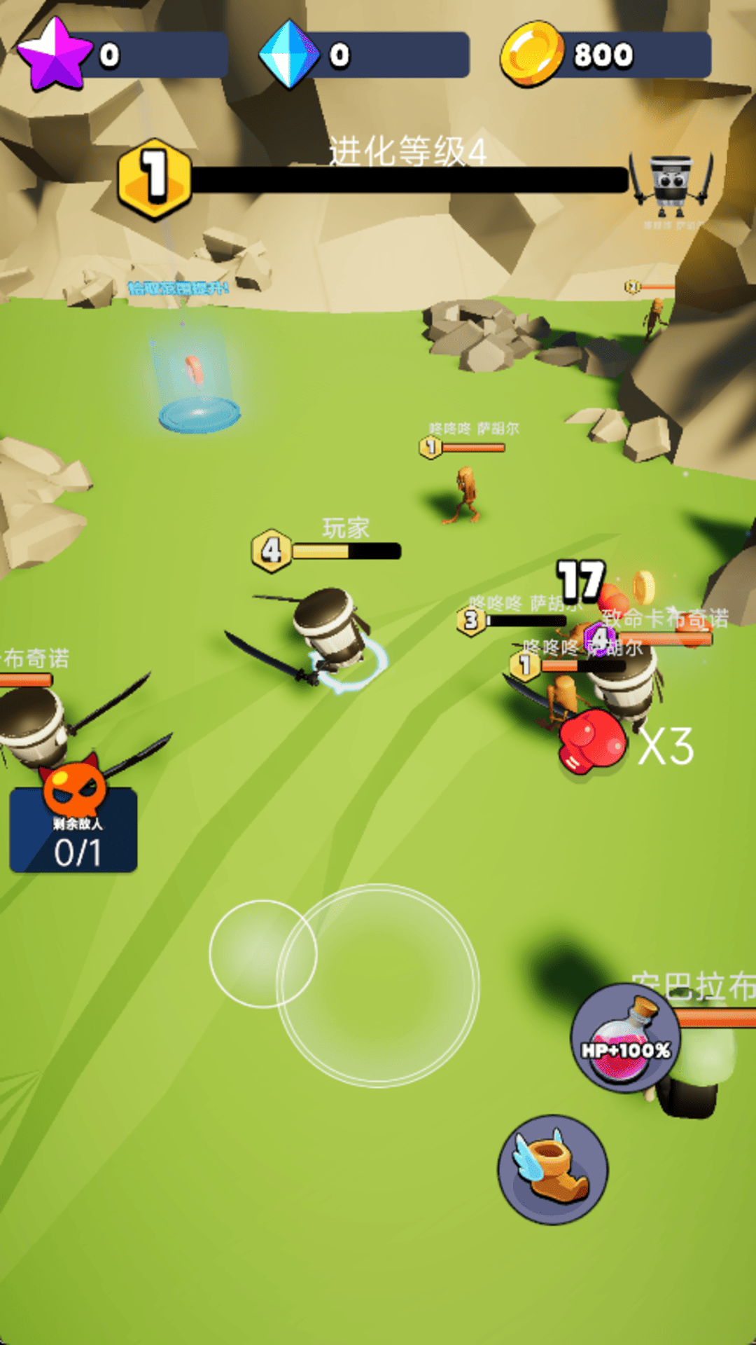 2、时刻关注你的血条,灵活躲避对手的袭击,顺利的活下来。