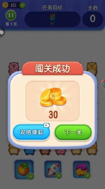 1、游戏中会随机出现特殊道具,如炸弹、彩虹链等,帮助玩家更容易地完成关卡。