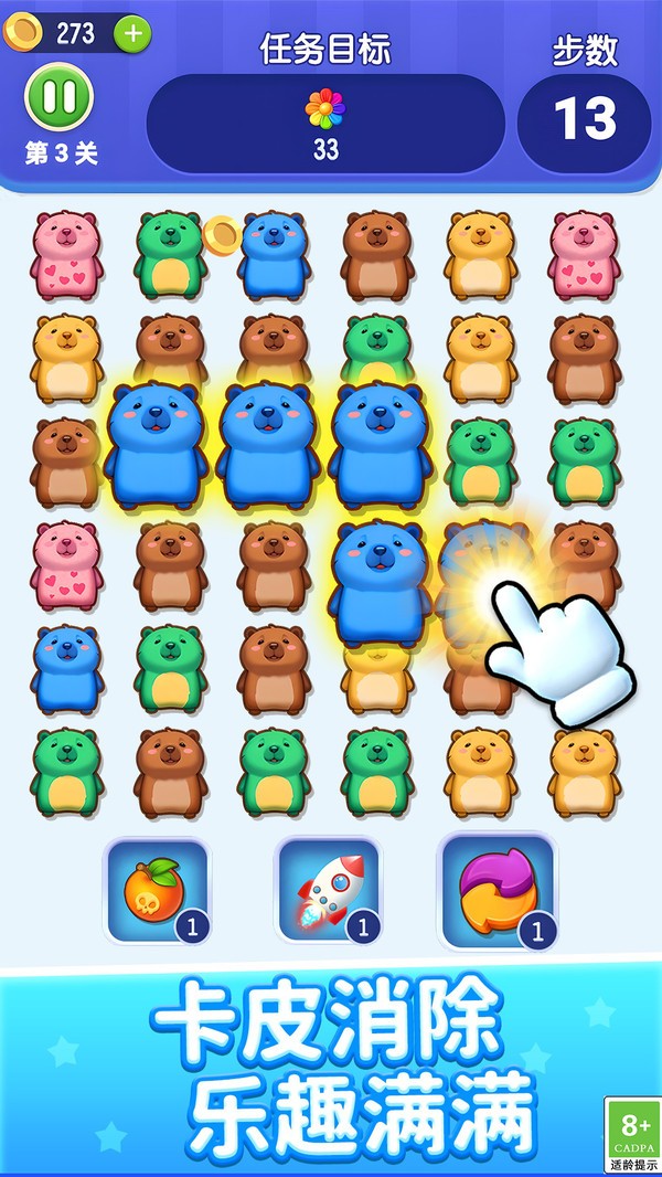 4、关卡中设置了“冰块封印”“藤蔓障碍”等复合元素,玩家需结合连击特效实现区域清屏,增加了游戏的策略性和挑战性。