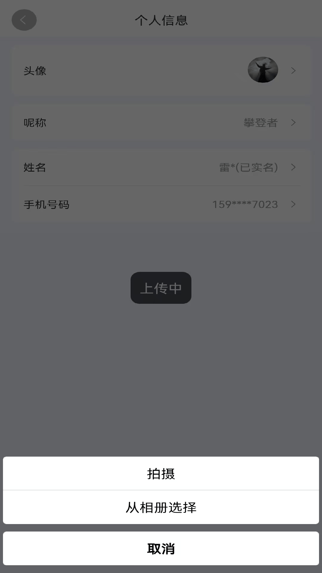 4、上传头像的方式多样,既可以从相册选择,还可以直接拍摄。