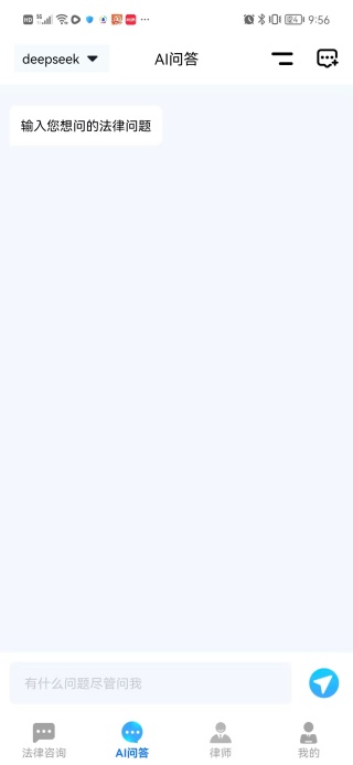 2、在问答页面中输入你的法律问题,然后进行回答即可快速解决;