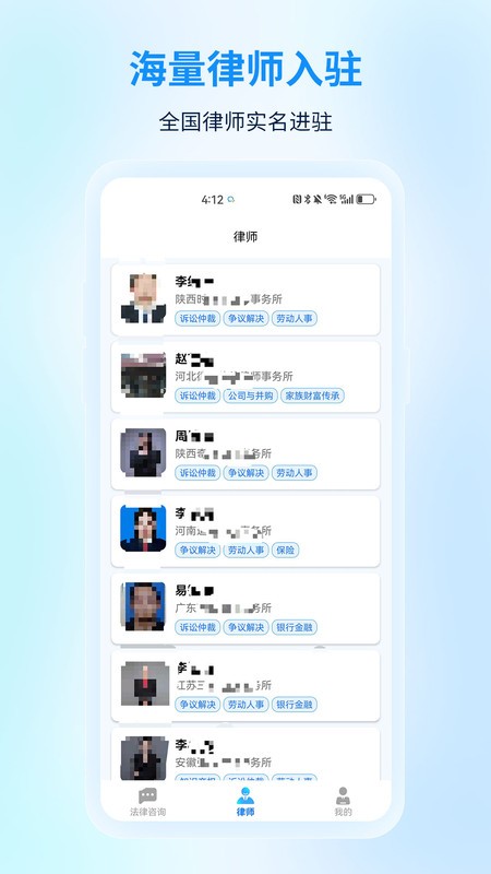 3、在律师页面中有很多优秀的律师,可以随时选择适合的律师进行体验;