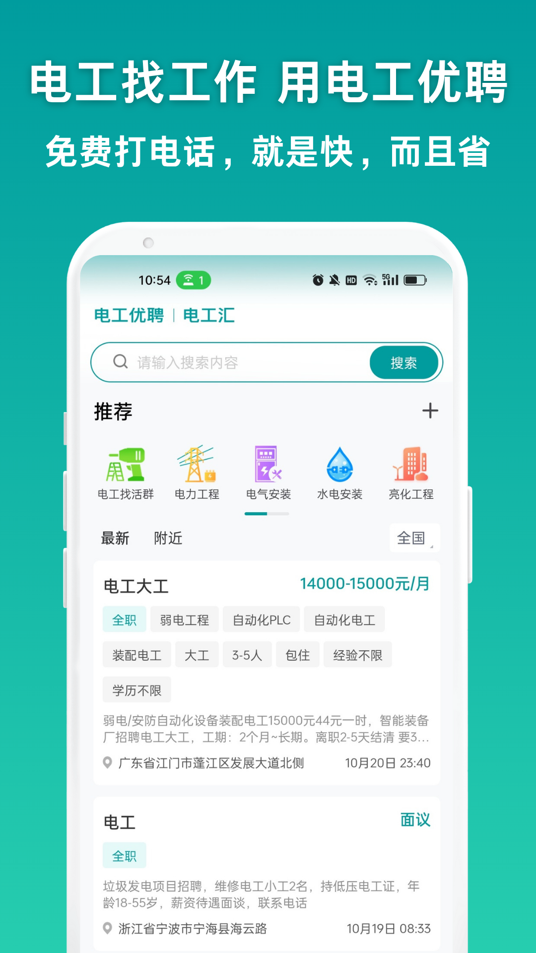 2、根据你的定位,为你提供附近电工招聘信息,方便去查看。