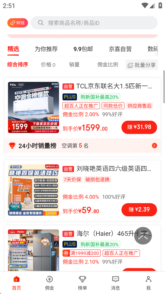 3、单品推广 精选高佣好货,专享优惠券推爆你的朋友圈 京粉APP首页,有我们精选的好物分类,好券商品。9.9包邮、京仓京配及各种类目的爆品推荐,帮您提高推广转化