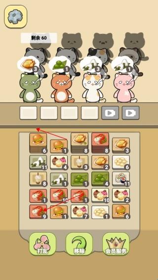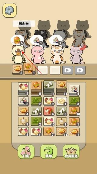 4、招待登门的各式可爱猫咪顾客,根据它们头顶的气泡提示准确上菜,赚取更多金币和好评,逐步打造您的五星级萌猫餐厅。