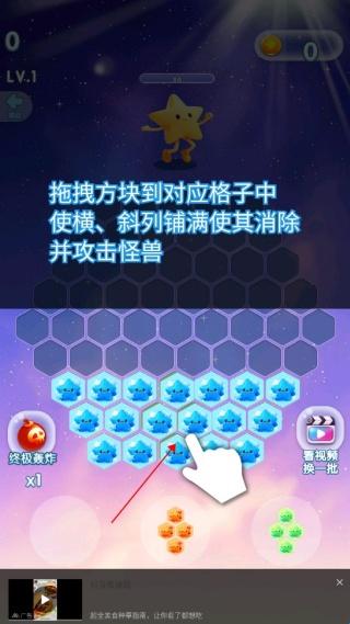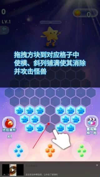 1、进入游戏后,首先选择您想要挑战的关卡,每个关卡都有独特的星空棋盘布局和特定的通关目标,例如消除指定数量的星星或清除障碍物。