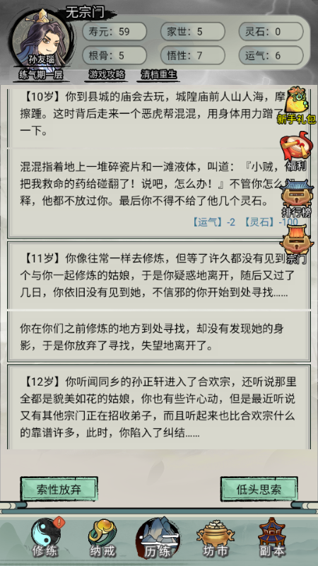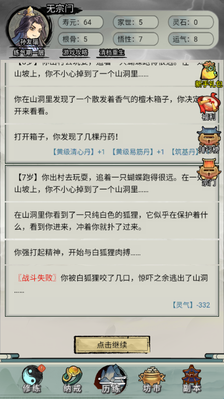 在游戏中,资源是非常有限的。你需要合理利用资源,比如合理分配修为、技能点、装备等。