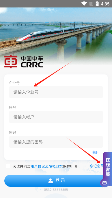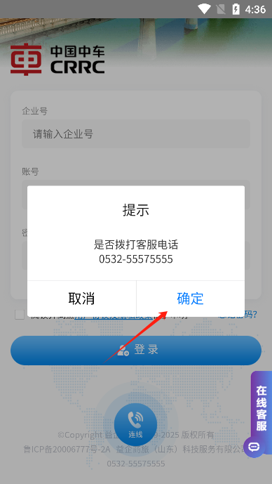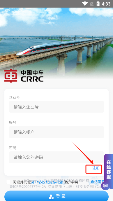 3、注册完毕后在登录页面输入基本信息和密码进行登录即可,平台还内置在线客服服务,点击右下角的在线客服