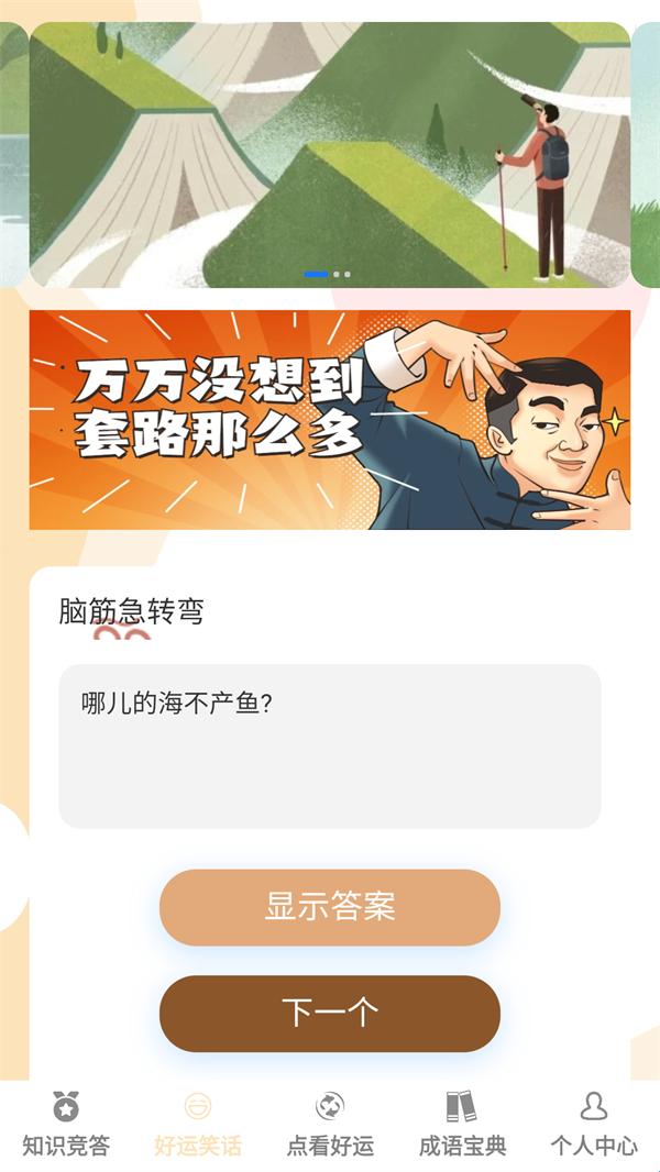 2、接下来我们可以通过“好运笑话”功能来解答各种不同类型的脑筋急转弯,从而提升的思维能力。