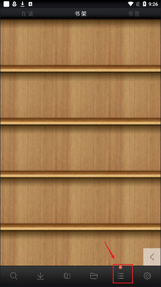 1、在本站下载打开AA小说下载阅读器,进入书架,发现一本书都没有,点击下方的"三"按钮,进入站点;