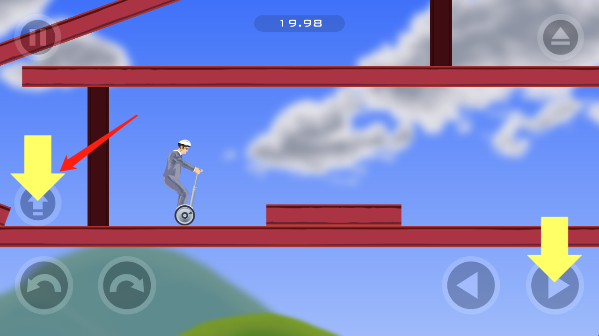 5、指向上方的按键是跳跃,在过路障时可同时点击向前进和跳跃。