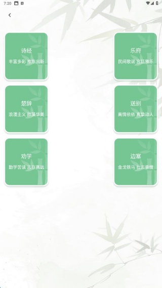2、按照主题分类诗词内容,筛选你感兴趣的诗词风格去阅读。